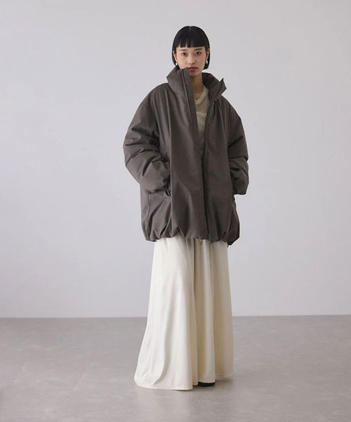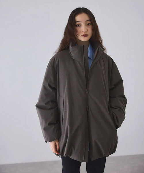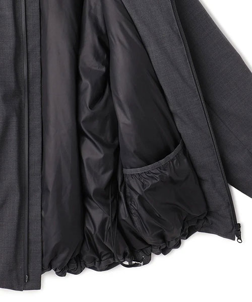 シルエットはややAラインに仕上げ立体感を持たせており、裾のドロスト仕様で好みのラインに調整が可能。