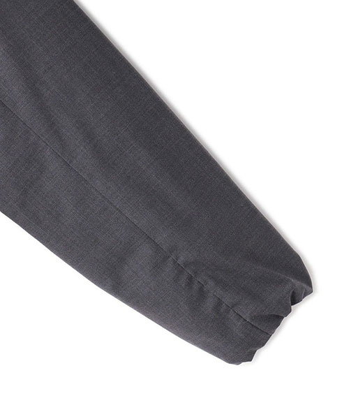 表地:ウール50%とポリエステルが混紡されたリサイクルポリエステル混のツイルスーチング素材。