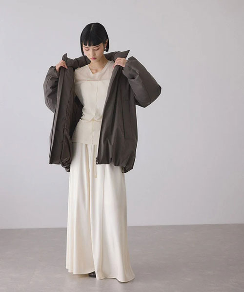 ダウン分量にもこだわり、肩周りの分量を減らし肩が張って見えない様に調整したデザイン。