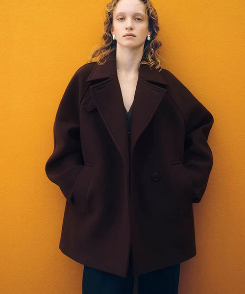 こだわりの華やかなシルエットで大人の抜け感を楽しむ。バランスの取りやすい丈感と首元の多彩なアレンジで、デイリーに活躍する汎用性の高いラグランミドルコート◆2025-26秋冬◆