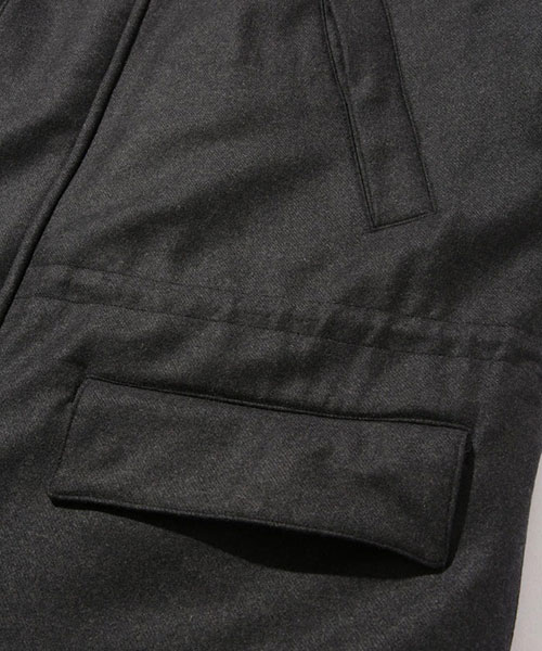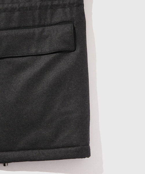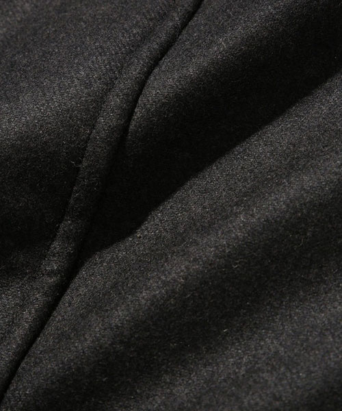 カシミヤに匹敵する繊度を持つオーストラリア産のウルトラファインメリノウール(15.5マイクロン、Super160's)を贅沢に使用した紡毛糸で織り上げたフラノ素材です。この希少な原料特有の膨らみと滑らかな風合いを活かした生地をゆっくりと時間をかけて縮絨することで、きめ細かく上質な光沢感と極上の滑らかさを実現しています。