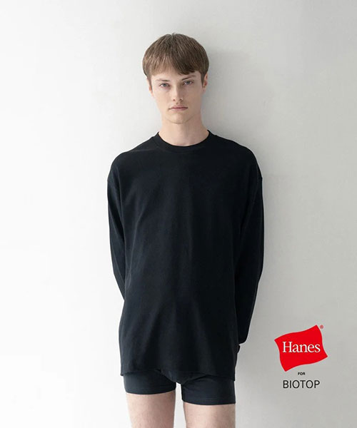 1901年「コンフォート(快適さ)」をコンセプトに、アメリカで誕生以来、アンダーウェアからカジュアルウェアまで数々の製品を生み出してきた「Hanes (ヘインズ)」とBIOTOPの別注企画