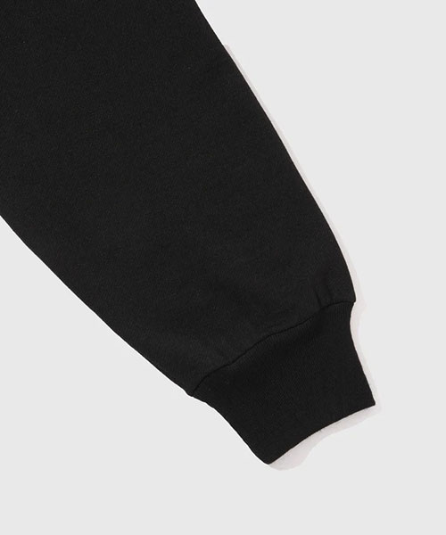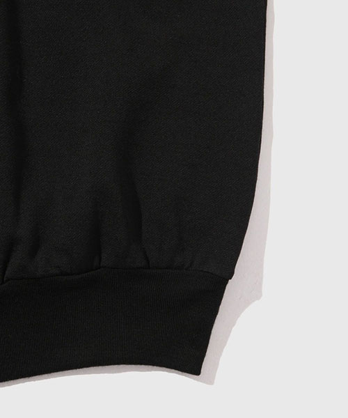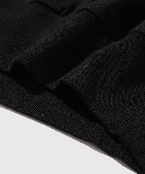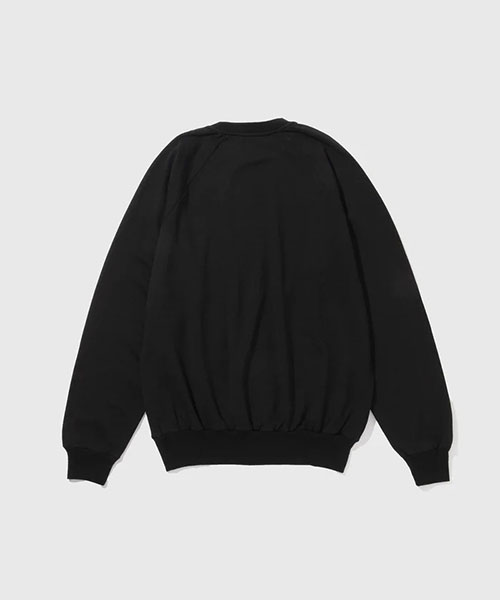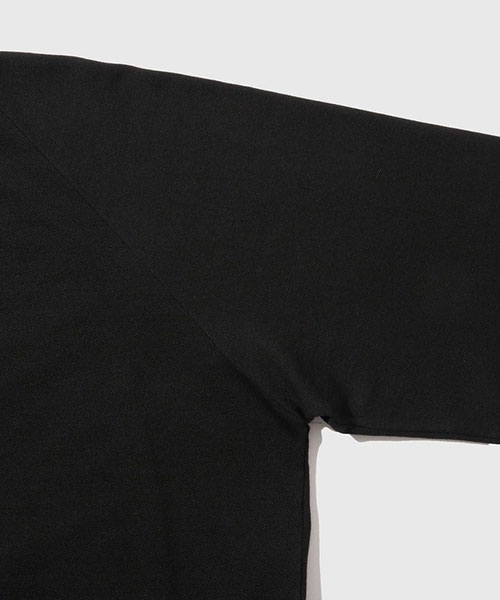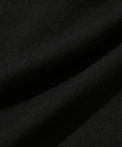 表面と裏面には毛羽をカットしたウール糸を使用し、中糸にはナイロン糸を取り入れて、伸縮性と軽さを実現したスウェットです。裏面は微起毛仕上げで、柔らかな温もりを感じる風合いを持ち、着心地の良さを引き立てています。