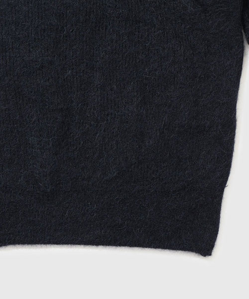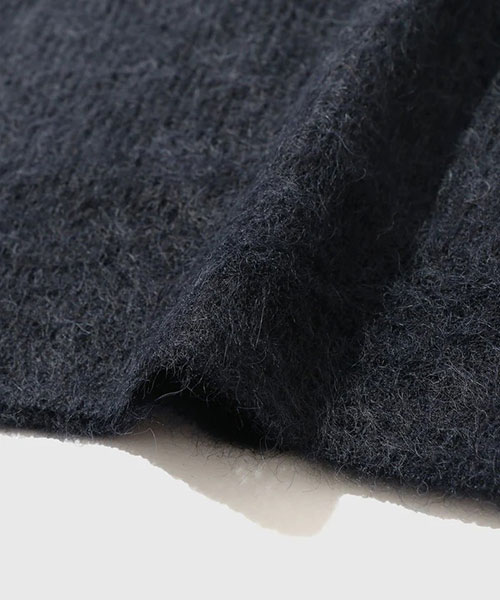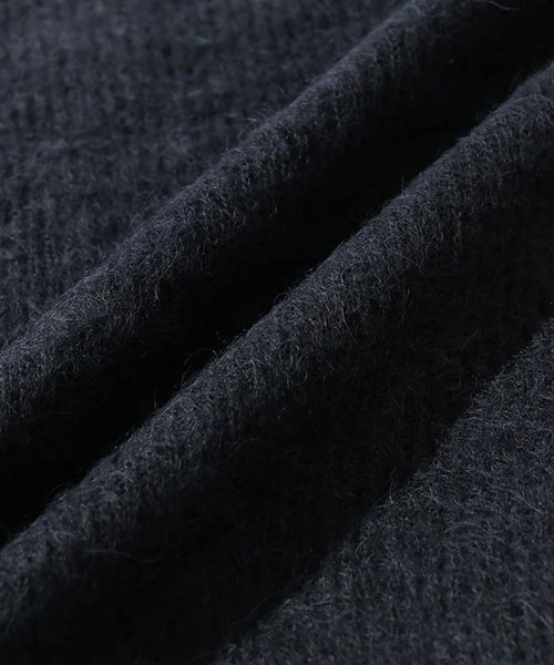 希少な原料であるベビースーリーアルパカのタムヤーンを使用したニットです。繊細な毛足を引き立てるため、時間をかけて丁寧に仕上げられ、極上の滑らかさと柔らかさを兼ね備えた素材です。