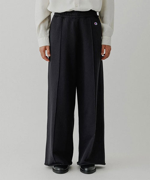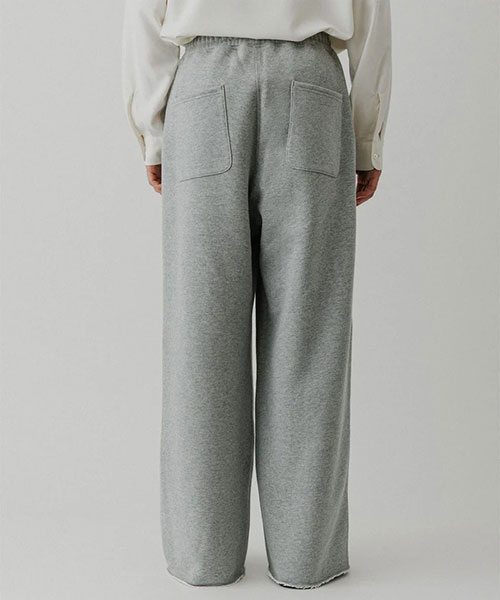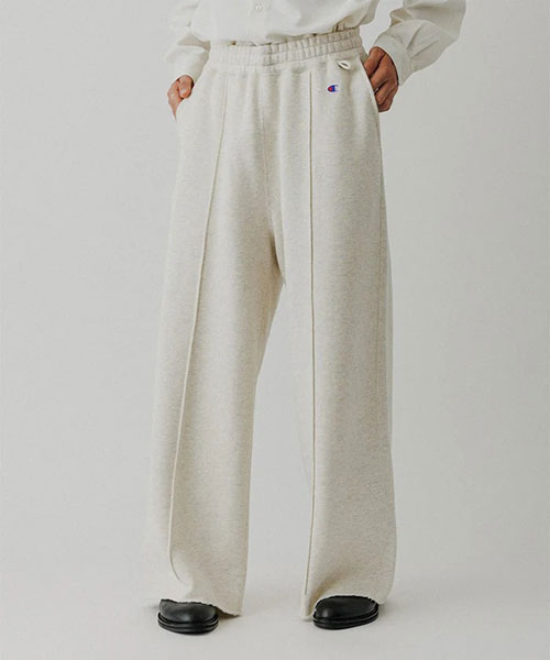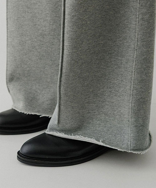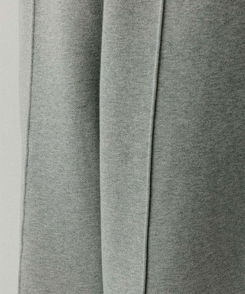裾まで落ちる特徴的なワイドシルエットに品の良さを演出するセンタークリースのステッチが、スラックスを連想させるこだわりのポイントです。