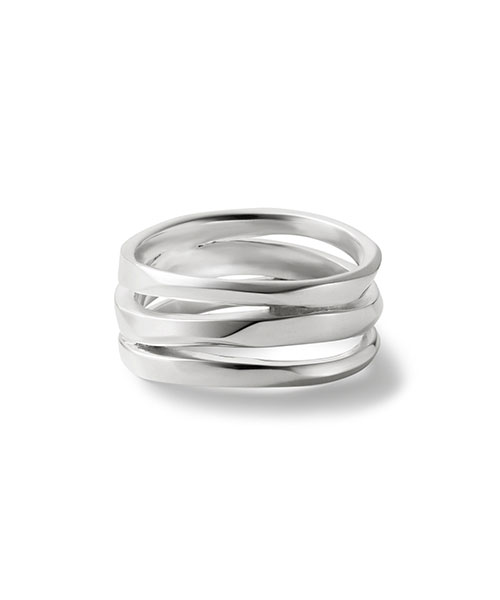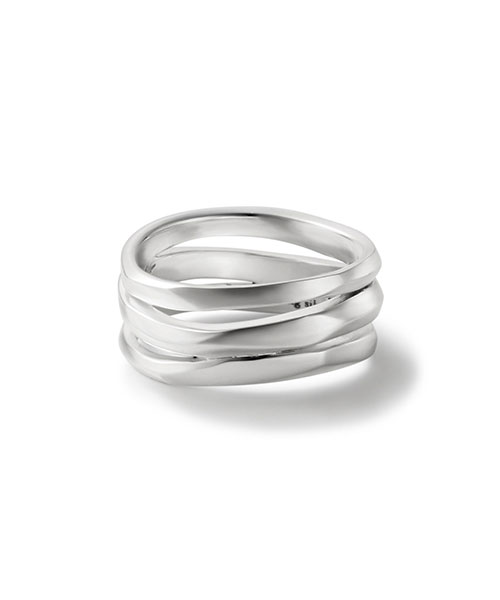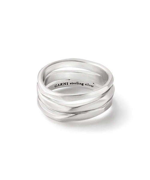 ガルニのシグネチャー商品「クロッケリー」の繊細な曲線、絶妙なエッジを施した3連のリングです。一つで3本重ね着けしたようなデザインが特徴です。