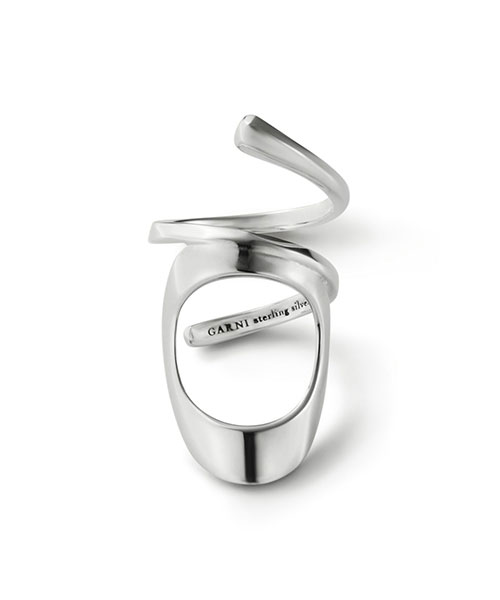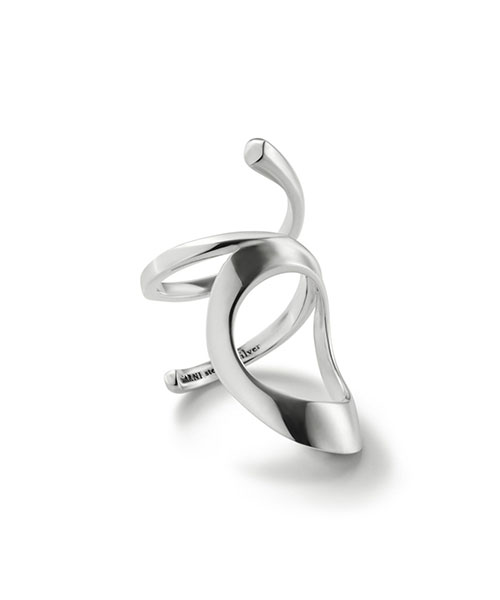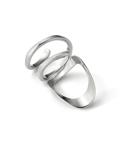 モダンに仕上げた指先専用のリング。厚みを抑え爪を覆う部分をくり抜いて全体の印象を軽やかに仕上げています。