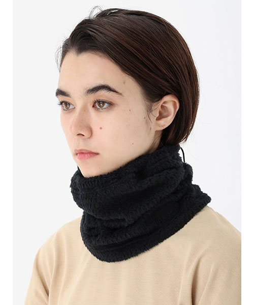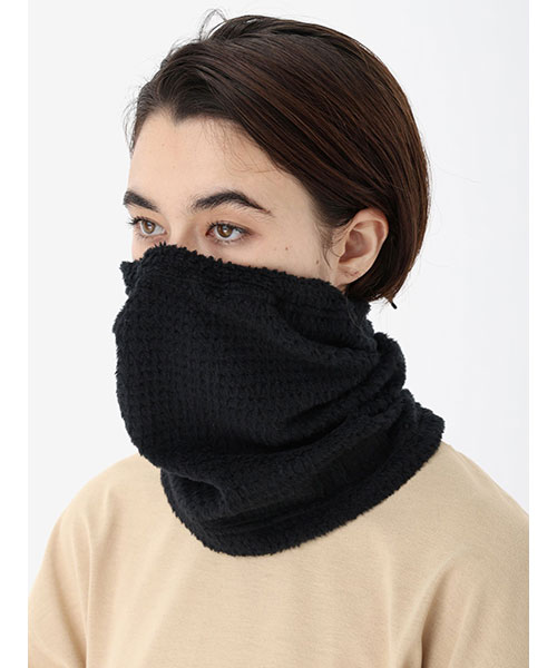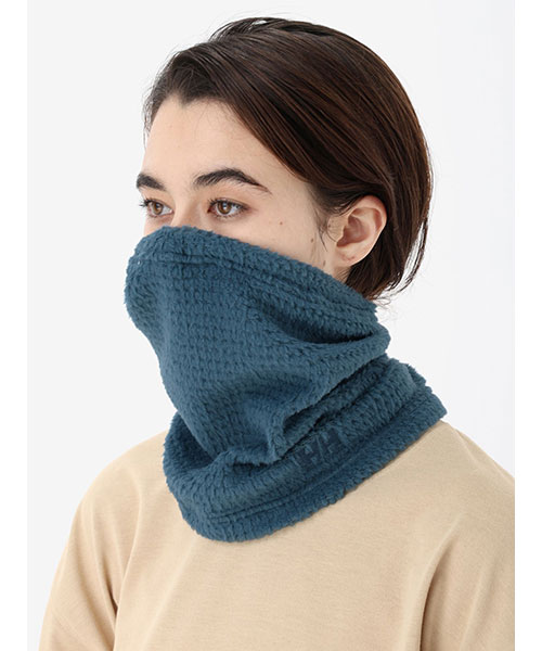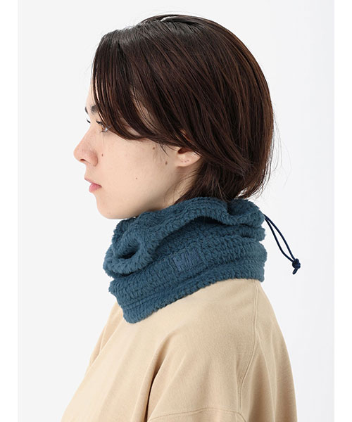 やわらかな風合いのため顔まわりにつけても快適。マスクのように口元を覆っても呼気が抜けやすく、ゴーグルやサングラスの曇りを軽減できます。上部に、フィット感の調節ができるドローコード付き。環境への負荷に配慮して、素材の一部にリサイクル糸を使用しています。
