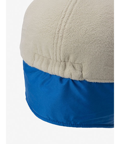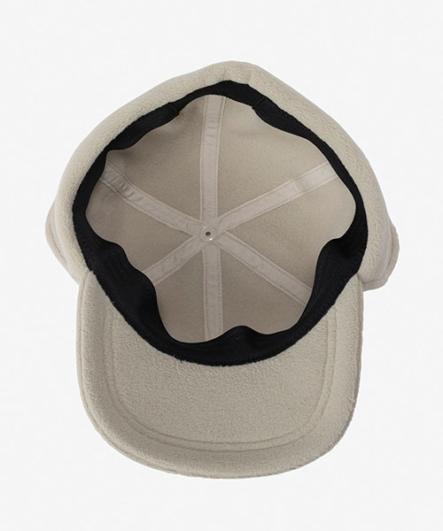 当時のロゴをイメージ採用したキャップは、異素材切り替えで表現した配色感がデザインのポイント。背面の一部をゴム仕様にすることで頭部にフィットし、イヤーカフ部分は跳ね上げて被ることもできます。