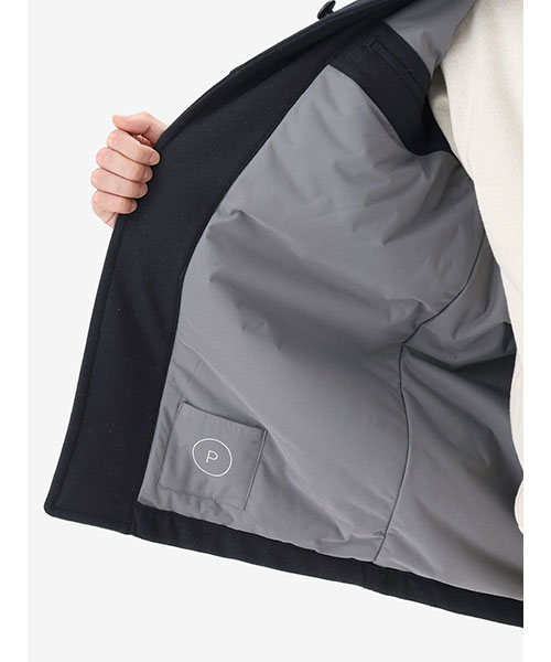 素材 | 〈表地〉リサイクルウールメルトン(毛85%、ナイロン15%)〈裏地〉WINDSTOPPER PRODUCTS BY GORE-TEX LABS ライナー2L(ポリエステル100%(コーティング等樹脂加工))〈中わた〉〉PRIMAROFT INSULATION(ポリエステル100%) |