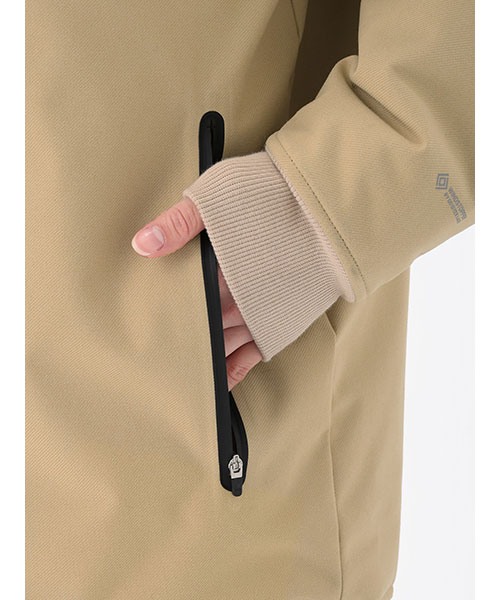 素材 | <表地>GORE-TEX PRODUCTS 70Dナイロンポリエステルツイル 2L(<表側>ナイロン64%、ポリエステル36%<裏側>ePE) <裏地>PERTEX Quantum 30Dリサイクルポリエステル(ポリエステル100%) <中わた>THINDOWN Kapok 80g(ダウン50%、カポック30%、ポリエステル20%) |