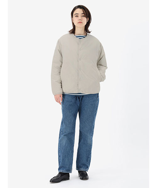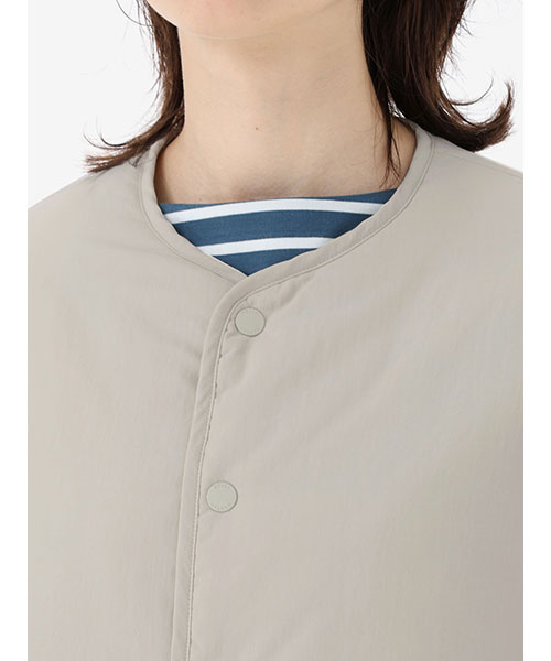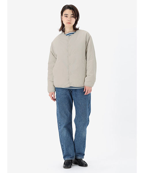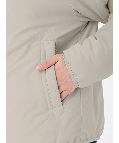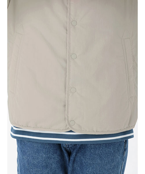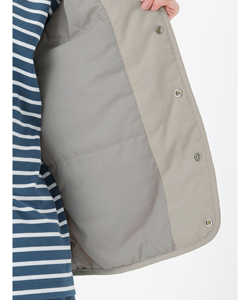 素材 | <表地>日本漁網回収ナイロンワッシャータッサー(ナイロン100%) <裏地>ポリエステルタフタ(ポリエステル100%) <中わた>thermoframe 100G(ポリエステル100%) |