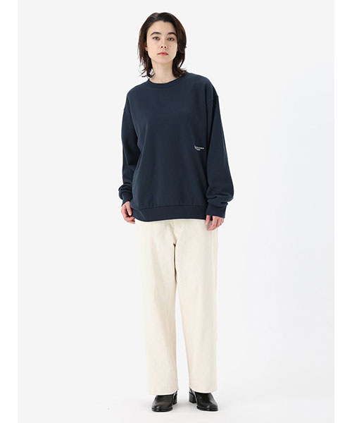ベーシックなレギュラーシルエットで、フロントにあしらった刺繍ロゴがワンポイントに。袖口や裾のリブは、すっきりとした見た目に仕上げました。環境への負荷に配慮して、素材の一部にリサイクル糸を使用しています。