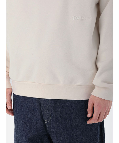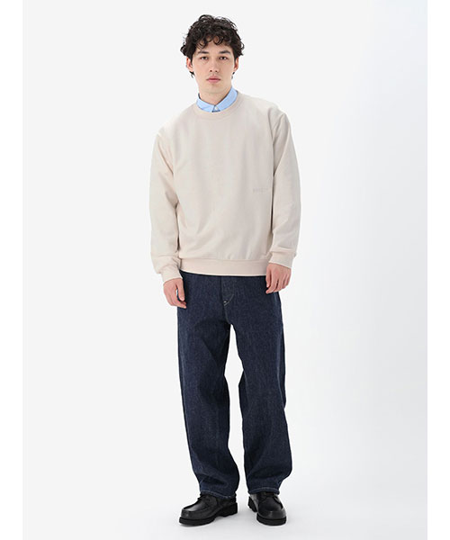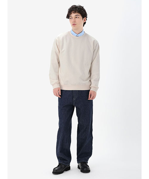 環境配慮型素材を採用した裏毛スウェットシリーズのクルーネックトップ。程よい肉厚感の裏毛スウェット生地は、幅広いシーズンにわたり着用しやすいのが魅力です。コットンとポリエステルの混紡素材で、ナチュラルな風合いと乾きやすさが両立。空紡糸によるふっくらとしたボリューム感と、裏毛の肌触りのよさを兼ね備えています。