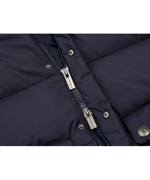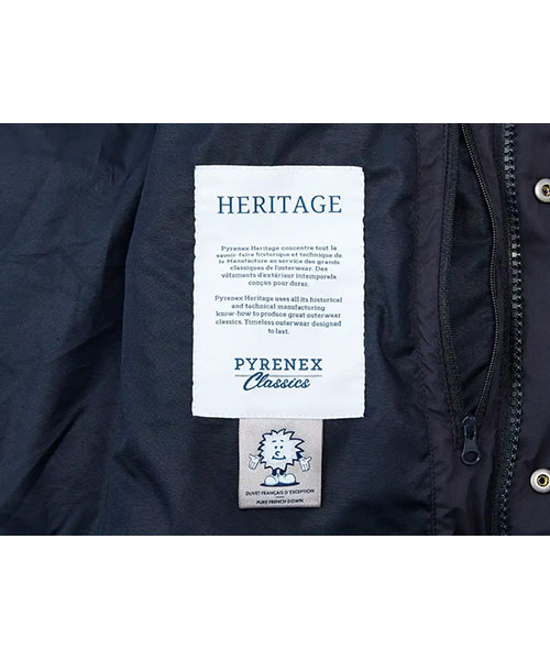 フロントは上下から開閉ができるダブルジップ仕様によりスタイリングの幅を持たせており、ピレネックスのロゴが刻印されたラージサイズのメタルドットボタンがデザインのポイントとなっています。