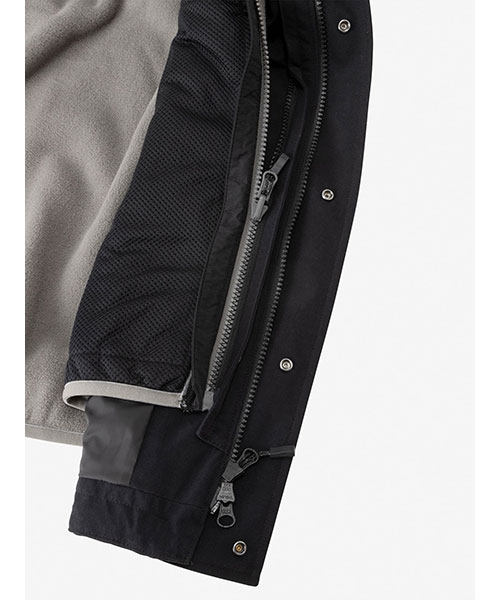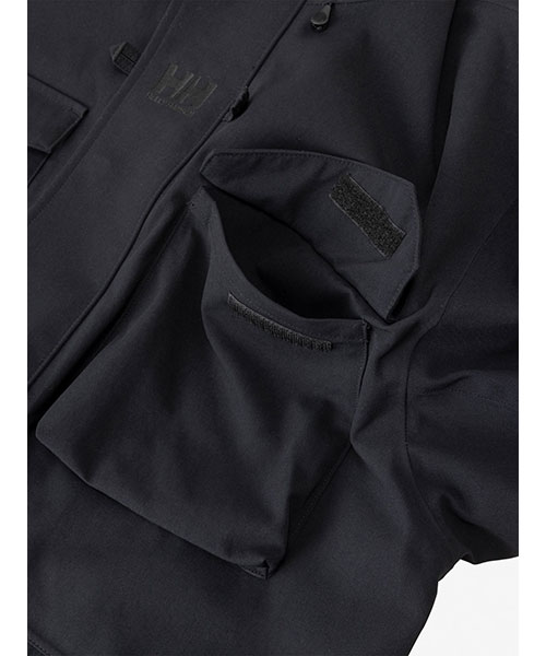 デザインポイントとして、セーリングジャケットを彷彿させる、マチ付きのアウトポケットを配置しています。保温性のあるミドラーの「Naeroy Down Jacket」「Zip Insulation Jacket」「Lyse Fleece Jacket」「Lyse Fleece Vest」と連結できるZip in Zip仕様。環境への負荷に配慮して、リサイクル糸を素材の一部に使用しています。