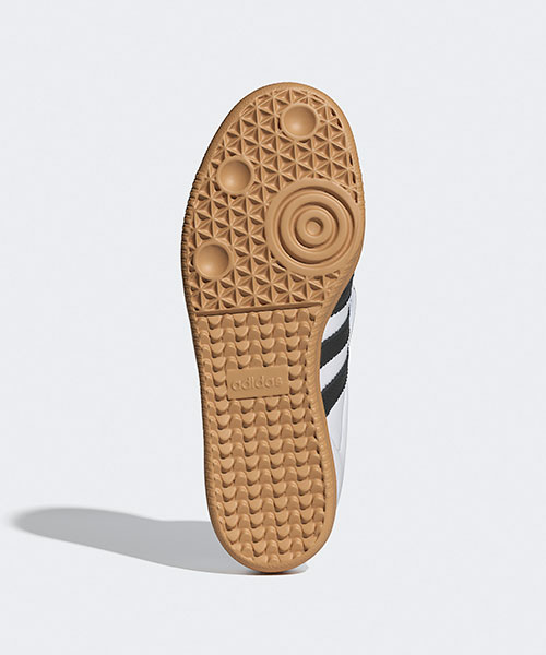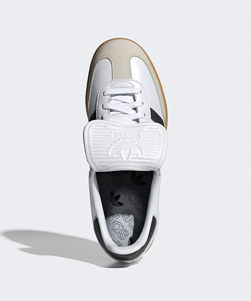 かつてはインドアサッカーシューズ、そして今はストリートウェアの定番となっているシューズに、大きなサッカースタイルのシュータンを付けて、存在感のあるデザインに仕上げたのがこのバージョン。