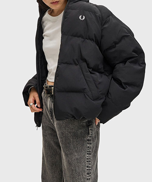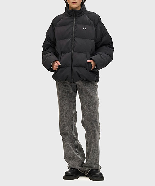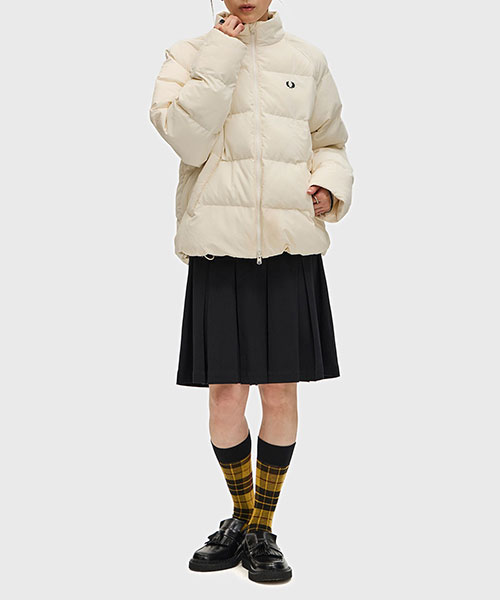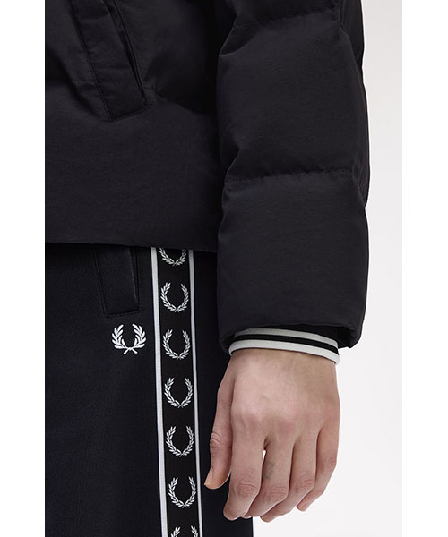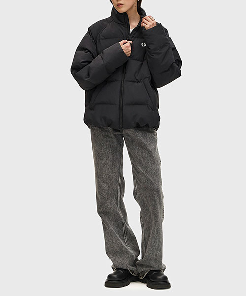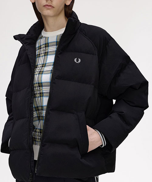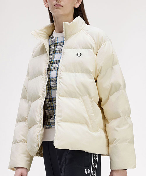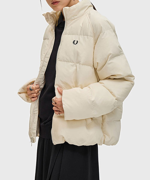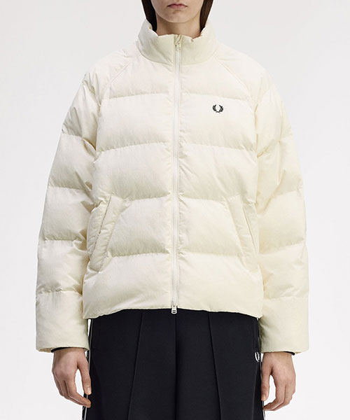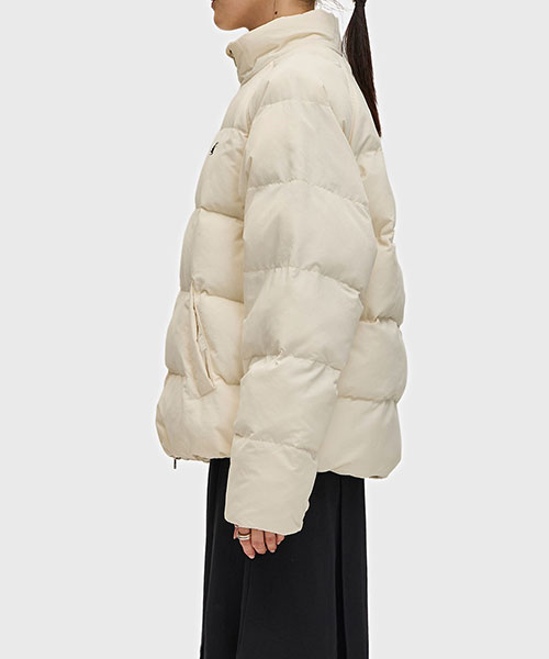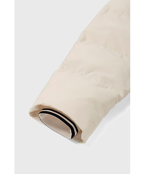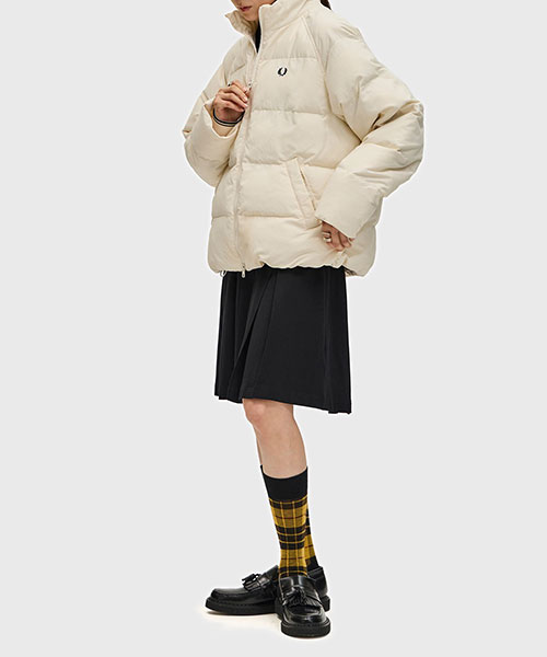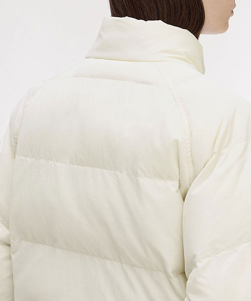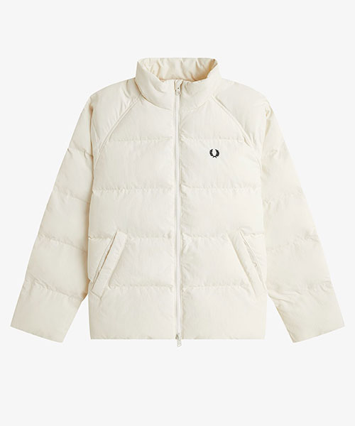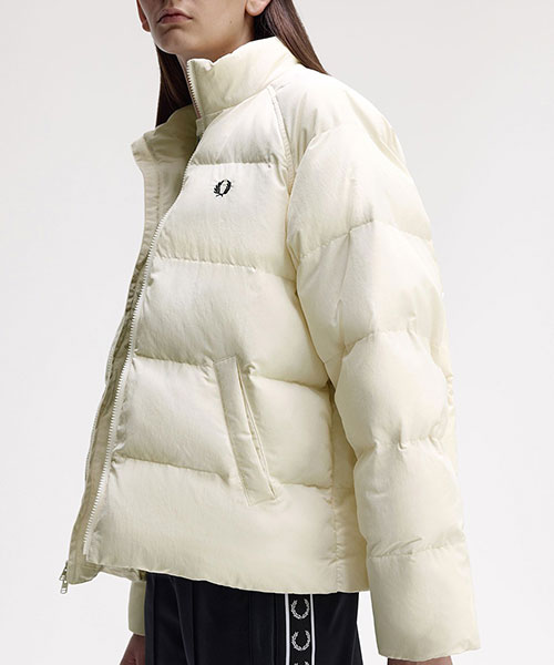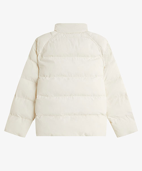 軽量のリサイクルナイロン素材を使用したパデッドジャケット。 コンパクトなシルエットにボリュームのある中綿のデザインで、裾のドローコードでシルエットを変えて楽しむことができます。 風を通しにくくしてくれるリブ袖のインナーカフには、シグネチャーのティップラインを施しました。BRAND CONCEPT
