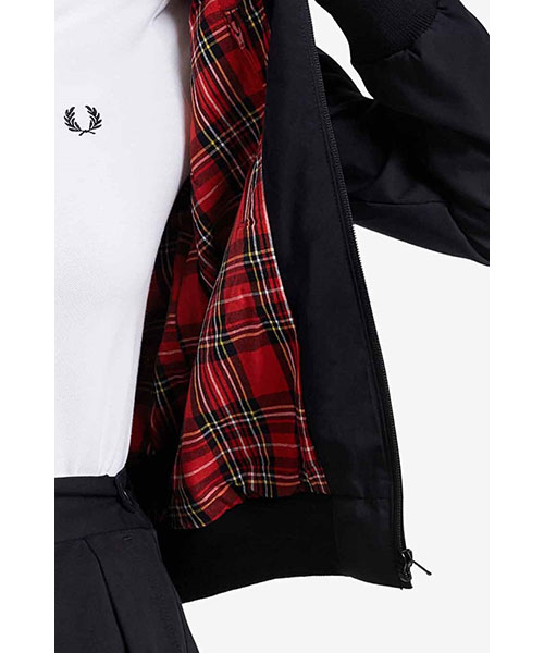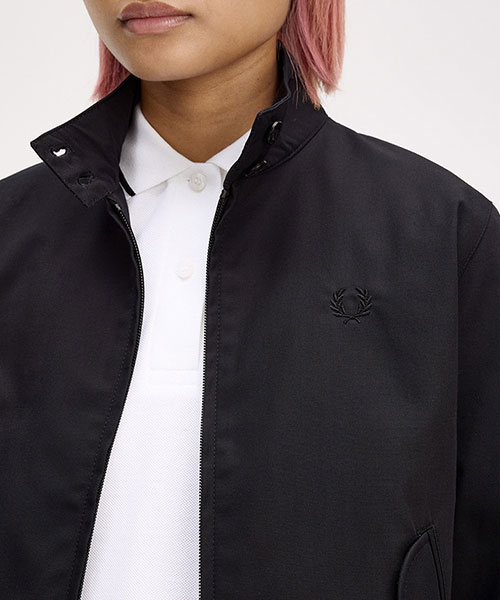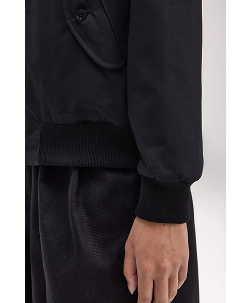 丈夫なコットンとポリエステルのブレンド素材を使用したハリントンジャケット。さらにフラップのポケットやボタンでとめるネック部分、そしてタータンチェックのライニングなどの特徴を備えています。BRAND CONCEPT