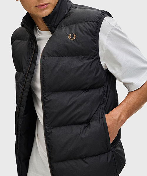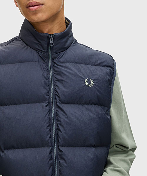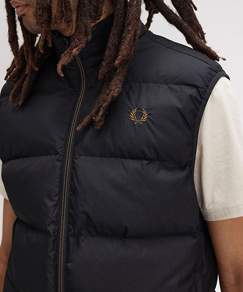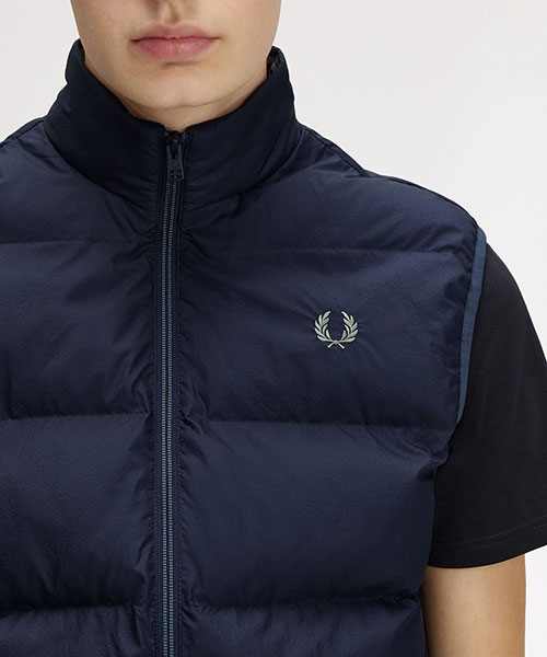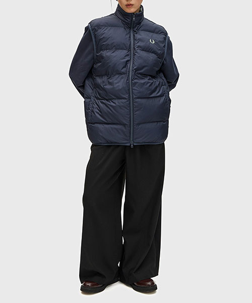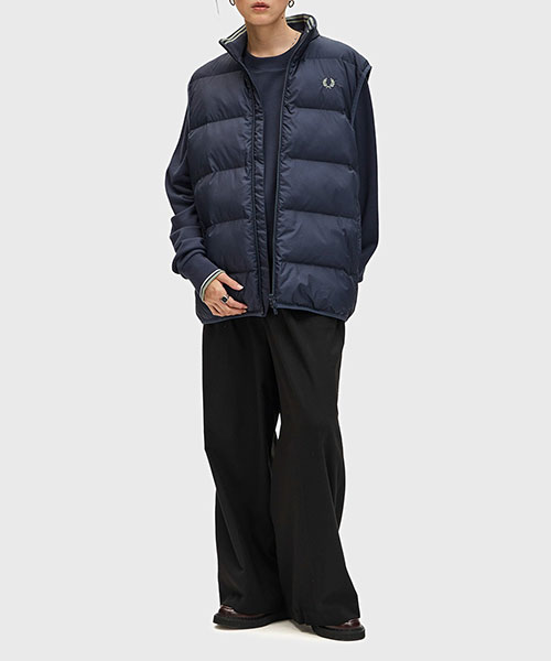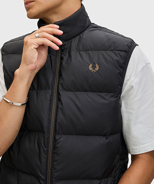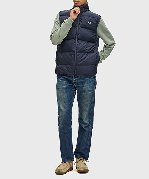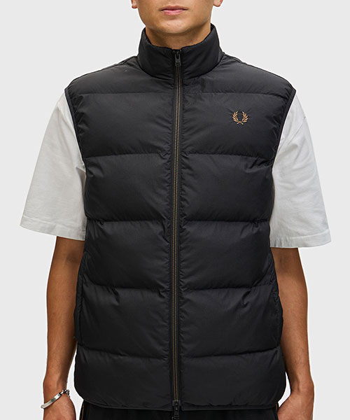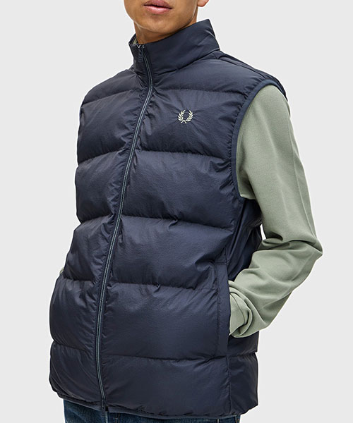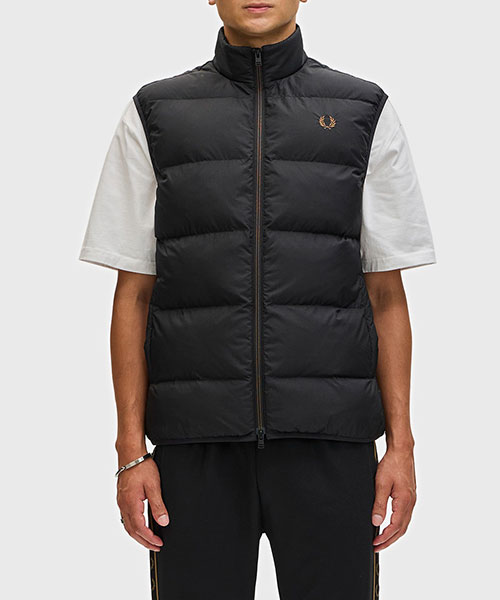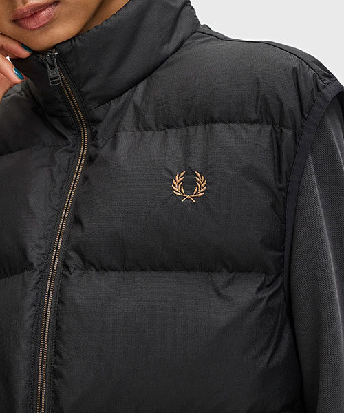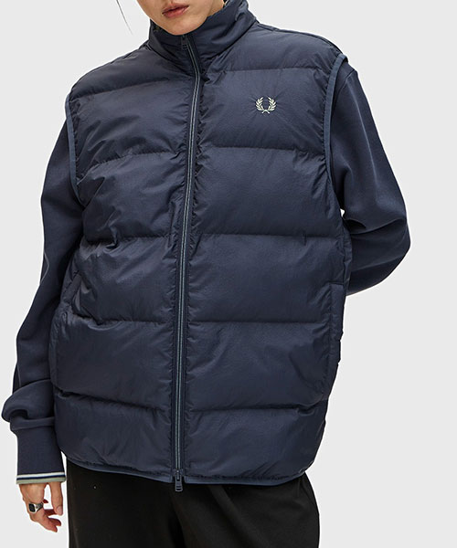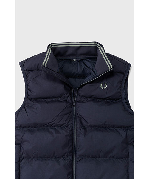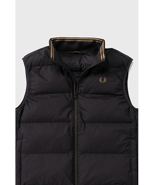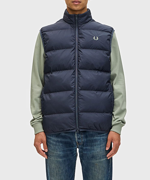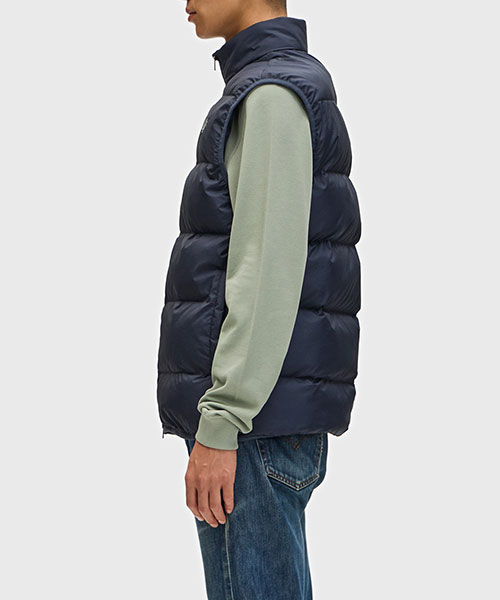 ナイロンリップストップを使用した中綿ジレ。 衿裏にリブを採用し、フロントのファスナーには刺繍と同じカラーのラインが入りアクセントになっています。 ナイロンリップストップは引き裂きに強く、表面をコーティングすることにより雨を弾きます。サイドポケットには温かいフリースを内蔵したベストです。BRAND CONCEPT