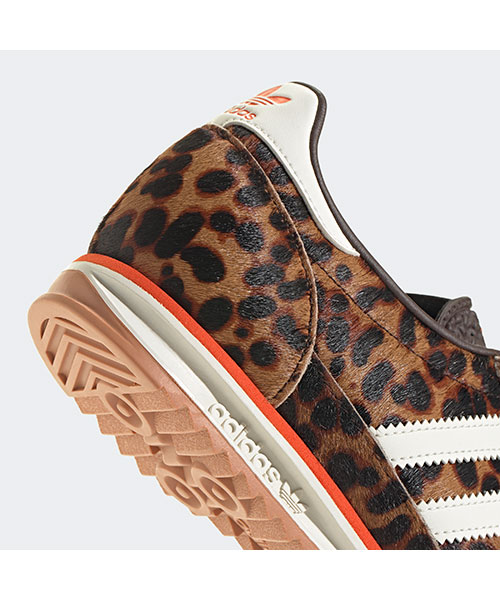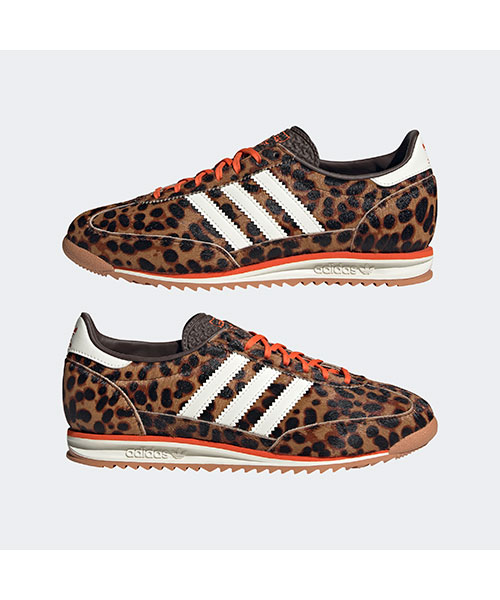 アーカイブのランニングシューズをレオパードプリントで再構築。70年代に誕生したアディダス SL 72 OGは、初めてナイロンアッパーを搭載したランニングシューズとして、業界に衝撃を与えたモデル。