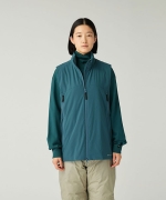 表地には、光沢を抑えたミニリップストップ素材を採用。あえてコーティング等をしないことで、軽さとしなやかさ、ストレッチ性を活かしています。また、環境に配慮したC0撥水を施しています。裏地には、ポーラテック社の最軽量アルファダイレクト(87g/m2)を使用。保温性を備えつつ、メッシュ構造であることで高い通気性を兼ね備えており、熱気や湿気がこもらず、快適な着用感になっています。さらに、4wayストレッチ性で、動きやすさにも配慮しました。秋・春にはアウターウェアとして、冬にはミドラーとして、気温の変化によって使い分けられます。ポケット内側にポーラテック アルファダイレクトを使用することで、ファスナーを開けたままにすればベンチレーションとして、手を入れた際はウォームポケットとして機能します。裾は軽さを意識したゴム仕様となっています。