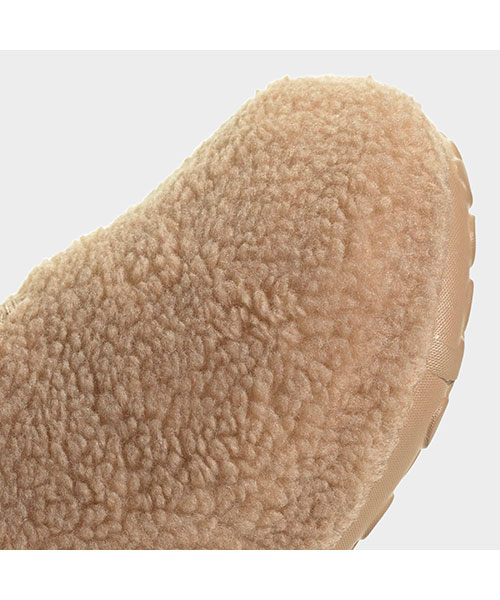 フォームアッパーを覆うシェルパ素材は、ユニークなルックスと快適な履き心地をもたらし、冬のお出かけにもぴったり。