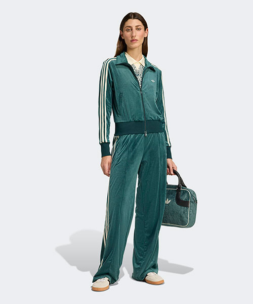 快適でスタイリッシュなファッションを好む人には見逃せない、アディダスのトラックパンツ。エンボス加工のベルベット製で、上質な見た目とソフトな手触りを実現。