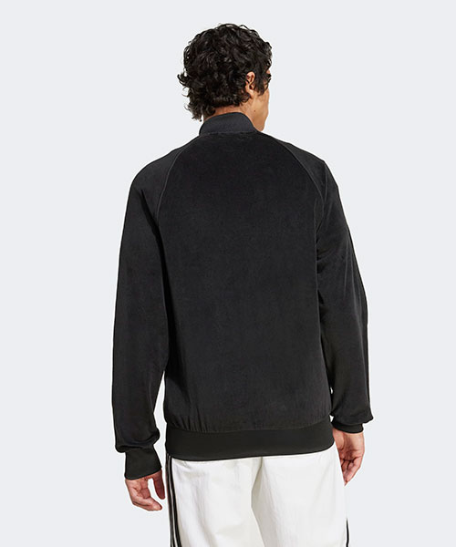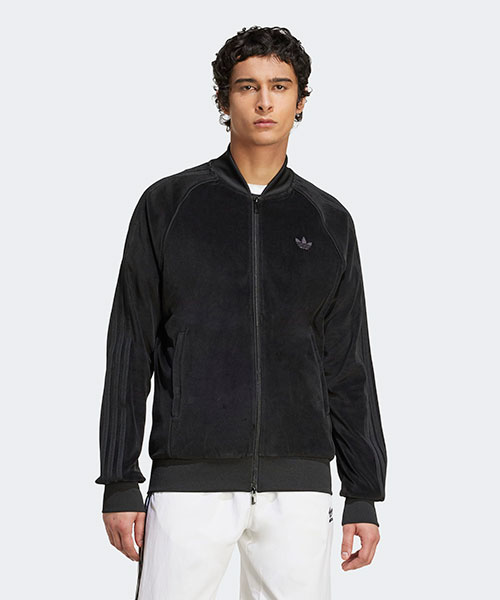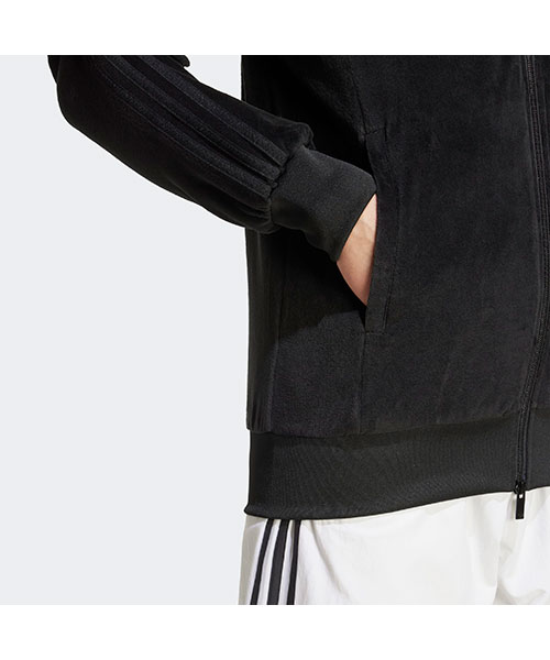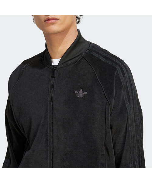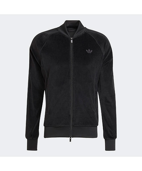 家でくつろぐ時や街に出る時は、このadidasのトラックトップの出番です。柔らかいベロアのぜいたくな肌ざわり。