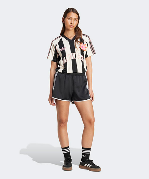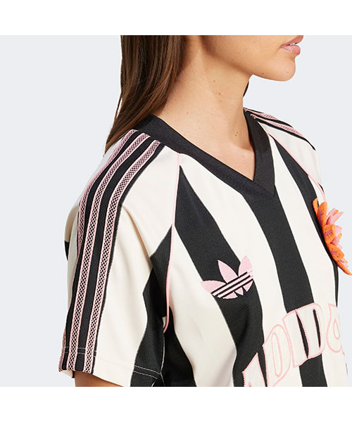 このアディダス オリジナルス ジャージーは、スポーツスタイルに夏らしいエネルギー溢れる雰囲気をプラスした一着。幅の広いストライプが印象的な、ルーズなシルエットのジャージー。