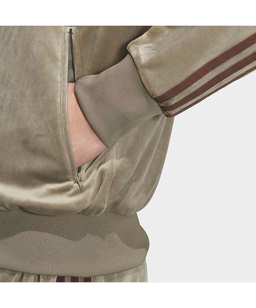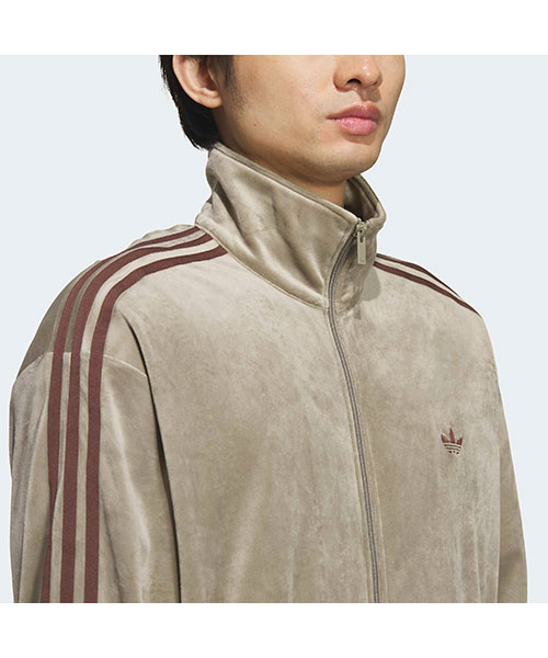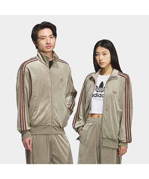 クラシックなadidas Originalsスタイルと現代的な快適さが融合したFB TTベロアのトラックトップ。ラグジュアリーなベルベットで作られたこのトラックトップは、着る人をソフトに包み込み、スタイルと質感の両方にこだわる人に最適なアイテム。