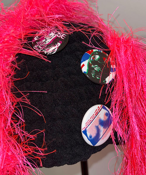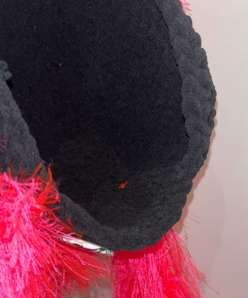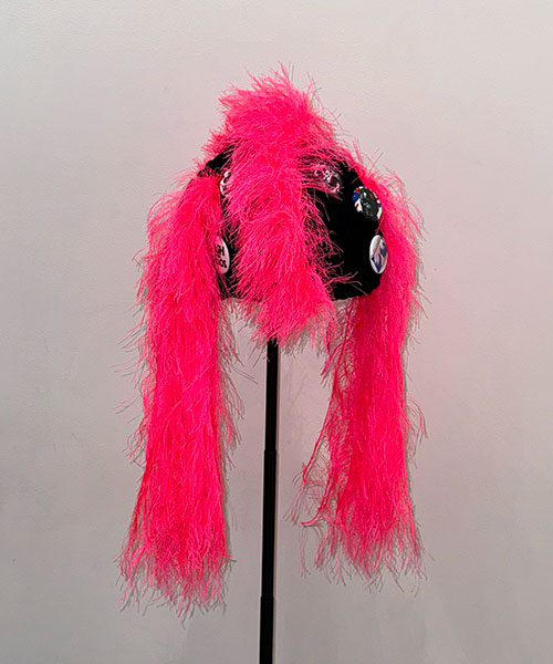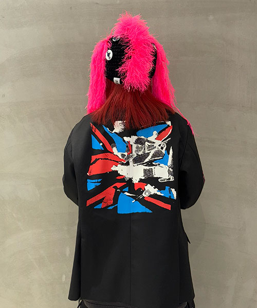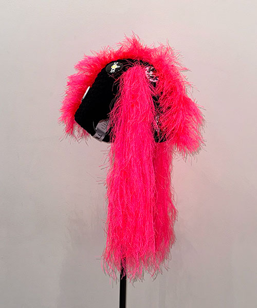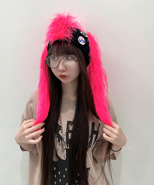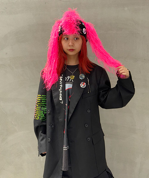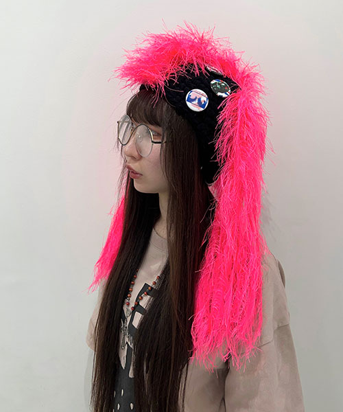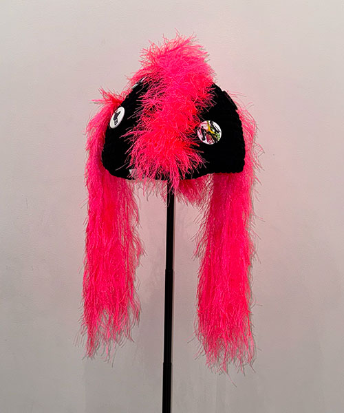 ハンドメイドで製作されたKIDILLオリジナルニットビーニー。クラウン部分にはネオンピンクの糸を使用し特徴的なツインテール、またモヒカンを思わせるディテールが落とし込まれています。