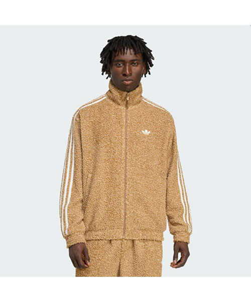 ブークレ ファイヤーバード トラックトップは、冬の暖かさとスタイルを重視したデザイン。クラシックなファイヤーバードデザインを引き立たせる上質なブークレ素材を使用したこのトラックトップは、冬のワードローブのマストアイテム。