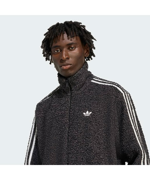 ブークレ ファイヤーバード トラックトップは、冬の暖かさとスタイルを重視したデザイン。クラシックなファイヤーバードデザインを引き立たせる上質なブークレ素材を使用したこのトラックトップは、冬のワードローブのマストアイテム。