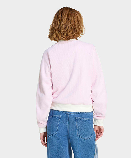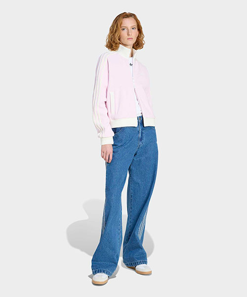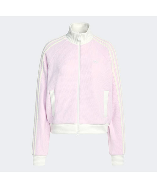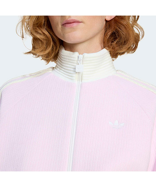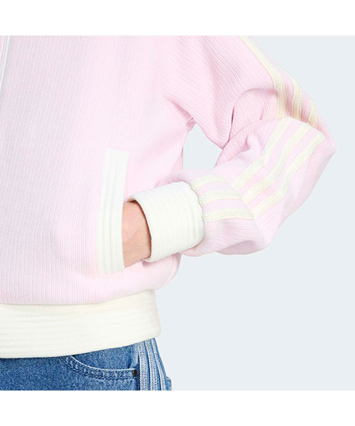 カジュアルにラグジュアリーを添える、アディダス オリジナルス ベロア ニット トラックトップ。ハイネックと厚手のニットのスリーストライプスをあしらい、見た目どおりリラックス感のあるルーズフィットを実現。