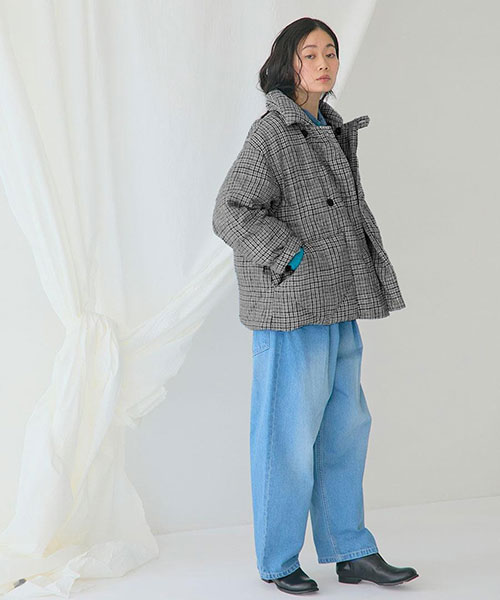 肩まわりにゆとりを持たせたドロップショルダー仕様で、着膨れしにくい絶妙な厚み感です。