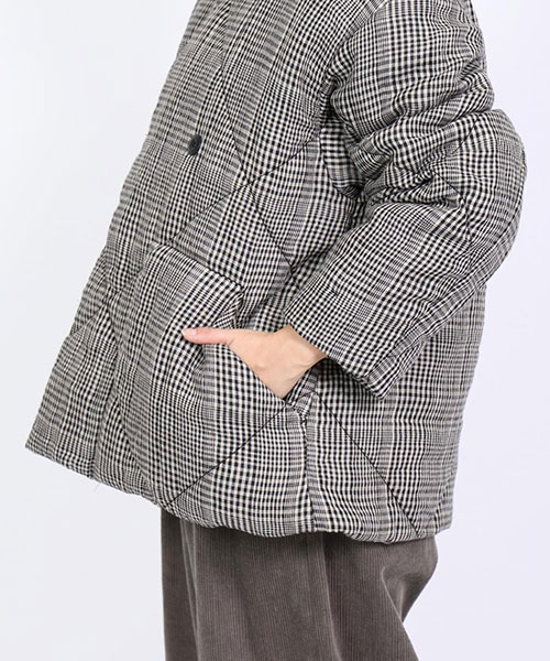 中綿入りでふんわりと軽く暖かいキルトジャケット。リネンならではの通気性&吸湿性で、蒸れにくく快適な着心地になっています。
