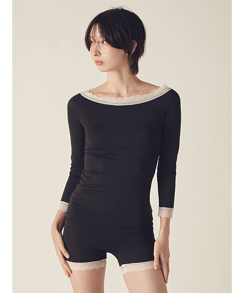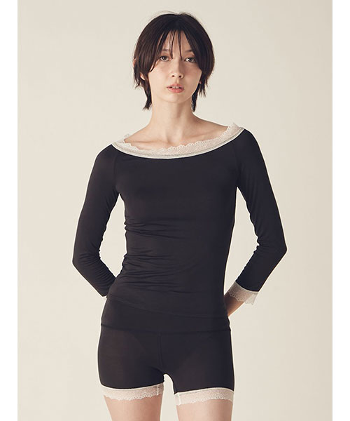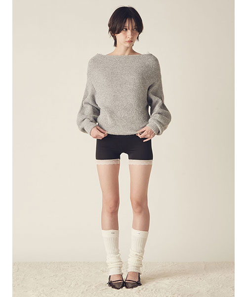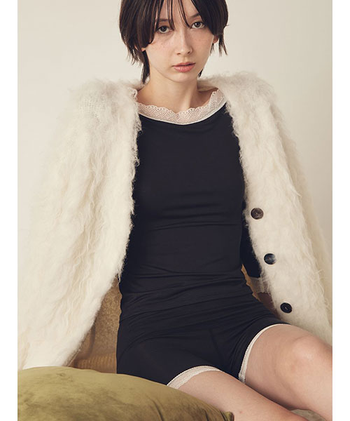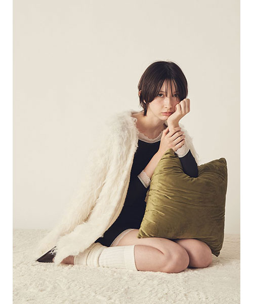 | 素材 | ニット部分:アクリル36%、ポリエステル33%、レーヨン24%、ポリウレタン7% レース:ナイロン74%、ポリウレタン26% |