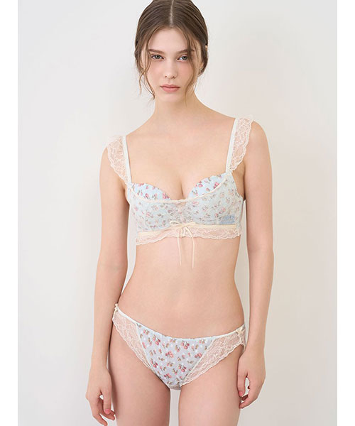 ANNA SUIとのコラボレーションコレクションから、待望のランジェリーラインが登場。ブランドのアーカイブ柄であるバラの蕾をプリントした華やかなデザインに、繊細なレースをたっぷりと重ねた特別感のあるショーツです。足口からサイド、ヒップにかけて贅沢にレースを使用し、軽やかさと上品な透け感を演出。両サイドにはグログランリボンをあしらい、可憐なアクセントに。ヒップ部分にはロゴ刺繍を施し、後ろ姿まで抜かりのない仕上がりです。