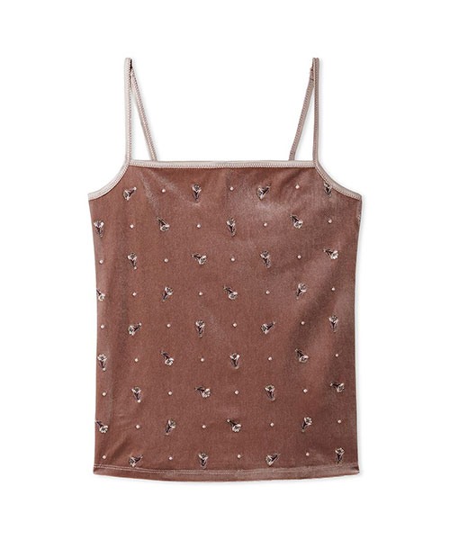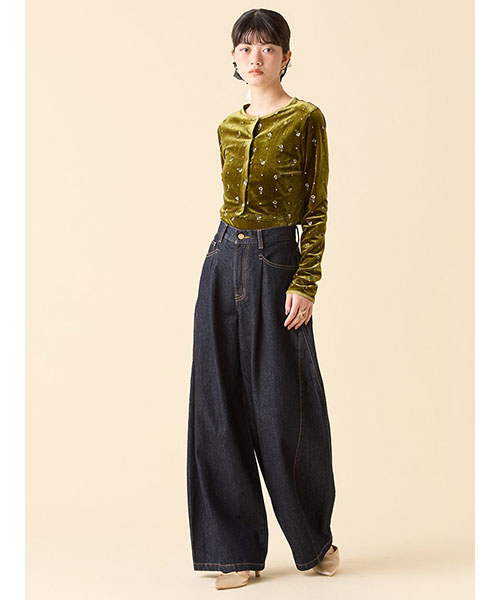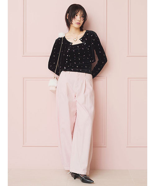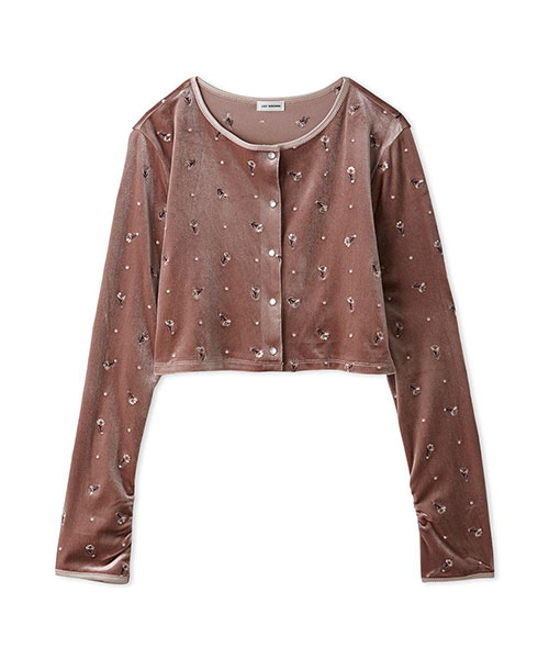 毎年ご好評をいただいているベロア刺繍シリーズが、今年はカーディガンとキャミソールのアンサンブルとしてアップデート。幾何学調の小花柄×ドットの組み合わせで、「LILY BROWN」らしいクラシカルな雰囲気を引き立てつつ、華やかさをプラスしています。セットで着用すれば、ワンランク上のレイヤードスタイルが即完成。もちろんそれぞれ単品でも使いやすく、手持ちのアイテムに一点加えるだけでコーデの主役になる着映え力が魅力です。