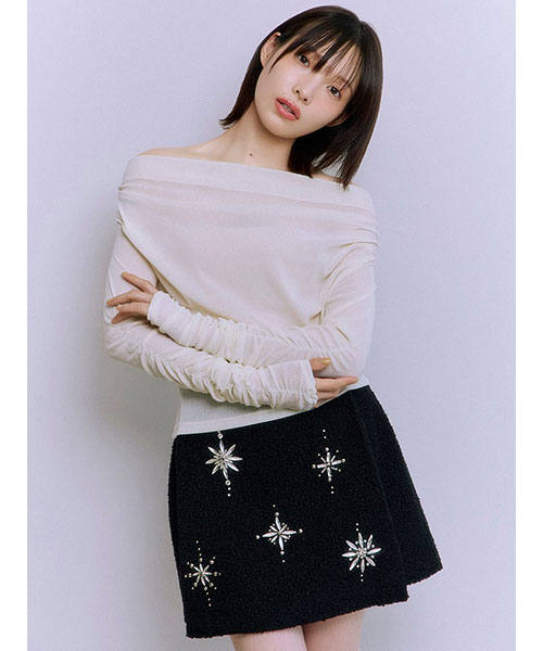 【肌見せと上品さを両立するフロッキーチュールトップス】【Design/Styling】