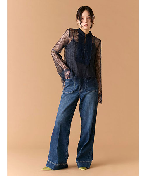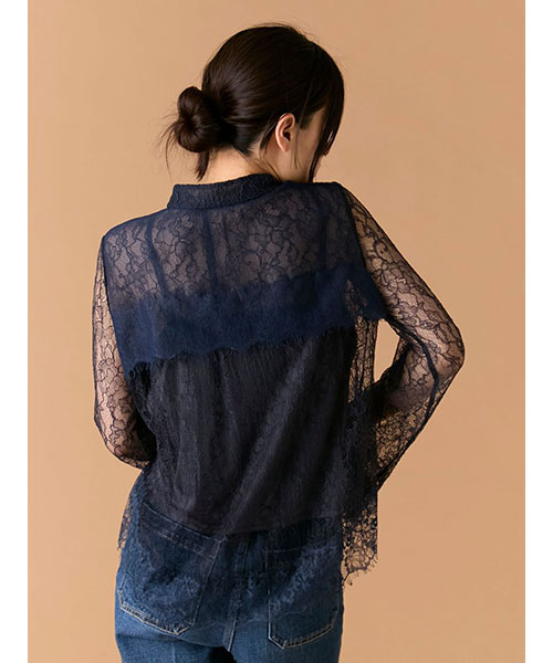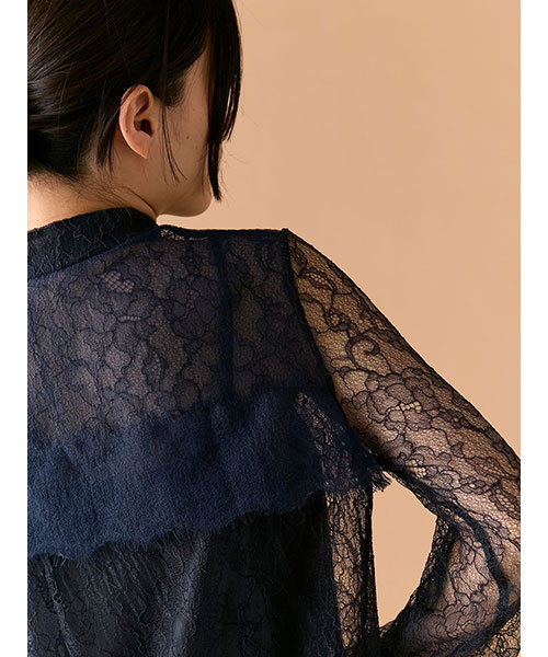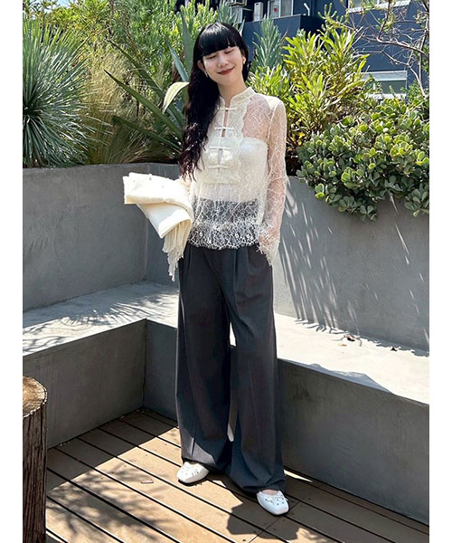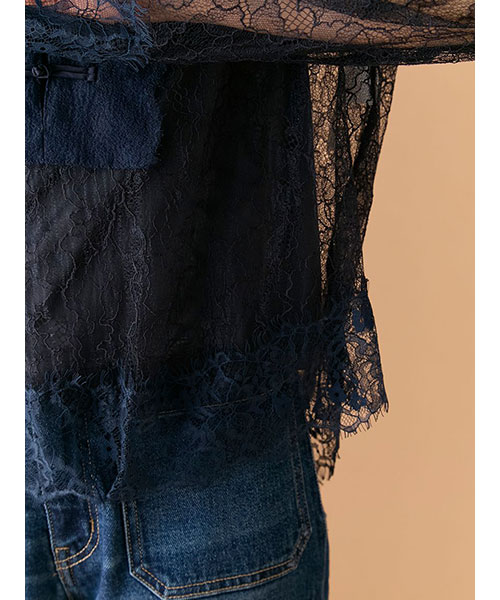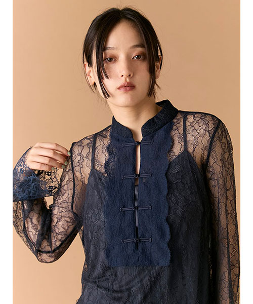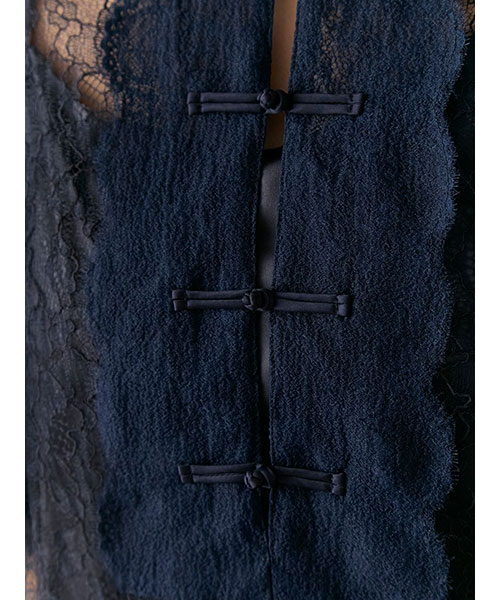 3種類の異なるレースを贅沢に組み合わせた、プルオーバータイプのチャイナブラウス。胸元と背中のヨーク部分にはチュールを重ねることで、レースの柄をより美しく引き立てています。クラシカルなチャイナディテールと繊細な素材使いが融合したデザインは、エレガントでフェミニンな印象に。付属のキャミソールのほか、お手持ちのタンクトップやキャミソールワンピースとのレイヤードもおすすめです。