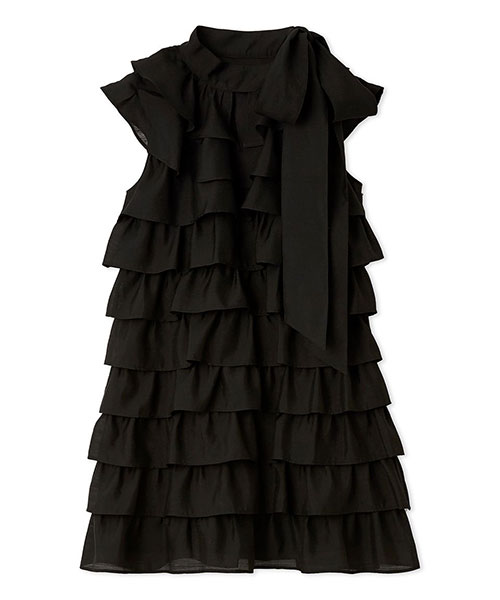 たっぷりのティアードフリルが目を惹く、華やかなミニドレス。ふんわりとしたボリューム感のあるシルエットながら、土台となるワンピース部分でウエストをさりげなくシェイプすることで、360度どこから見てもすっきり見えるAラインに仕上げました。サイドに添えたボウタイリボンがレディなムードを後押し。デイリーの主役ワンピとしてはもちろん、ちょっとしたお呼ばれにも活躍する一着です。