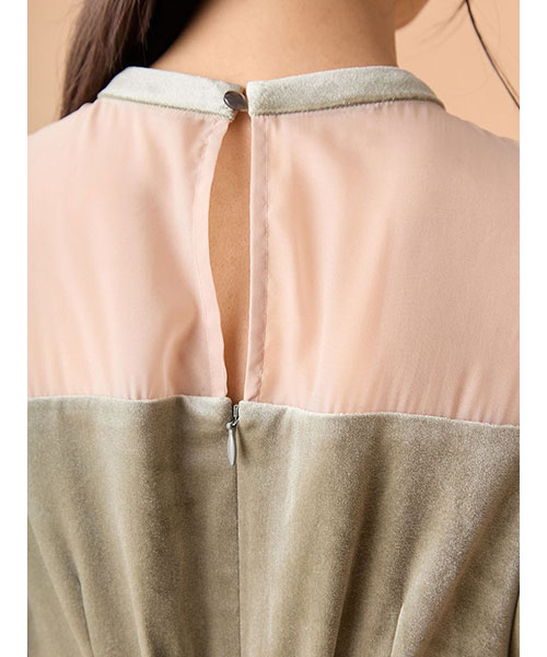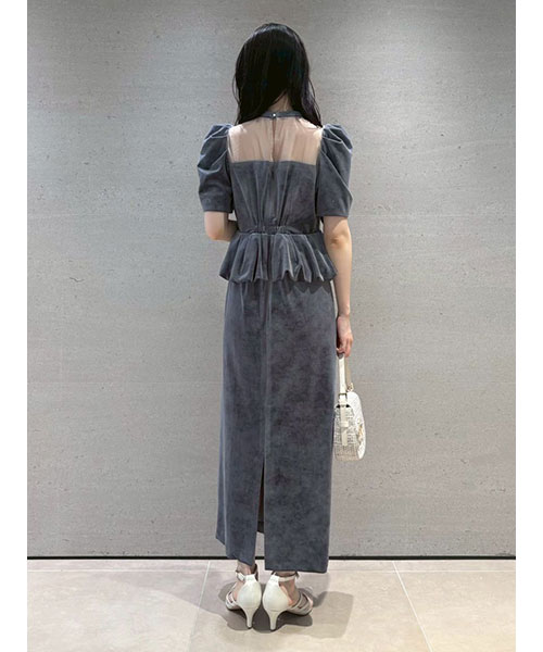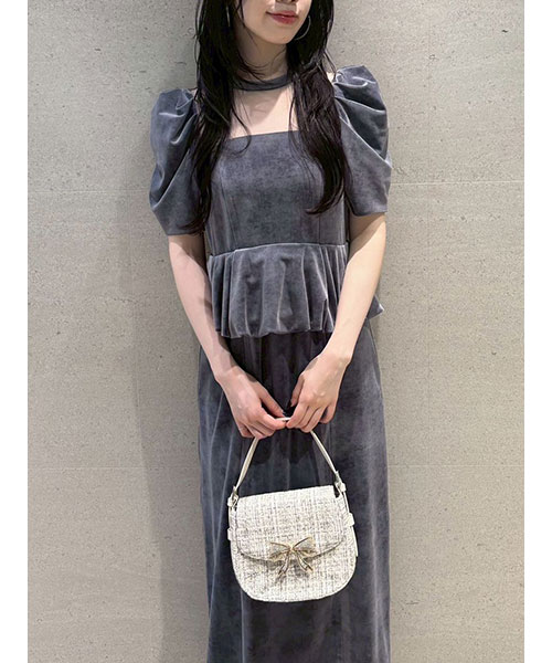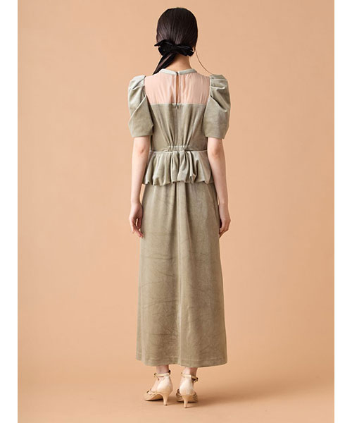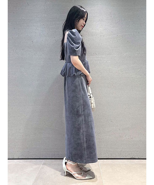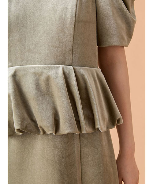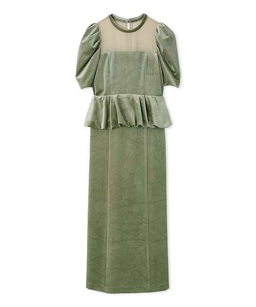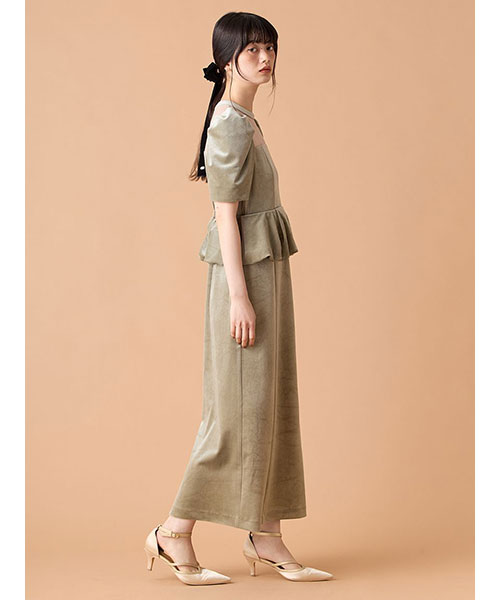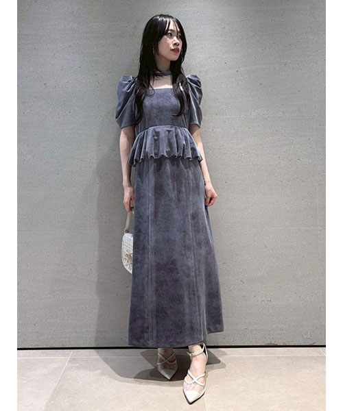 上品な光沢感を放つベロア素材が、纏うだけで気品漂う印象に導いてくれる1着。前シーズンも人気を博した美シルエットはそのままに、今季はぺプラムディテールをプラスしてよりトレンドライクにアップデート。ウエストを自然に引き締め、メリハリあるスタイルを演出します。オケージョンはもちろん、ちょっとしたお出かけや食事会にも活躍する万能ドレスです。