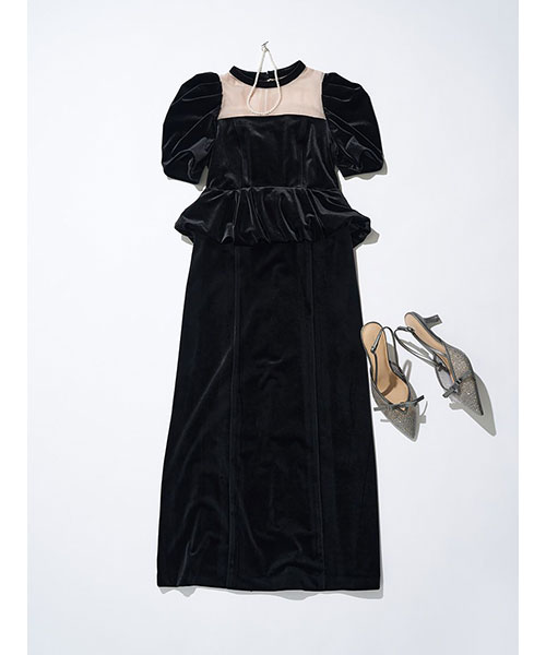 【華やぎと女性らしさが共演するペプラムベロアドレス】【Design/Styling】