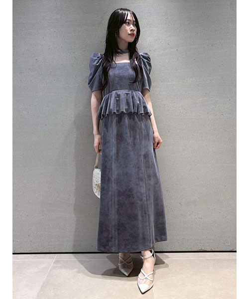 上品な光沢感を放つベロア素材が、纏うだけで気品漂う印象に導いてくれる1着。前シーズンも人気を博した美シルエットはそのままに、今季はぺプラムディテールをプラスしてよりトレンドライクにアップデート。ウエストを自然に引き締め、メリハリあるスタイルを演出します。オケージョンはもちろん、ちょっとしたお出かけや食事会にも活躍する万能ドレスです。