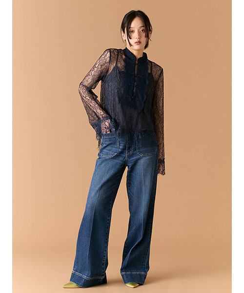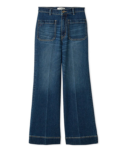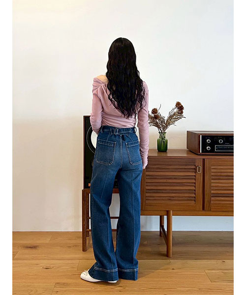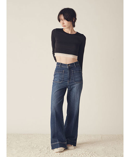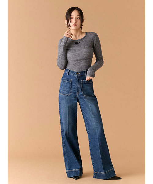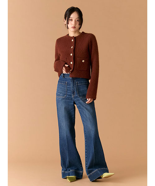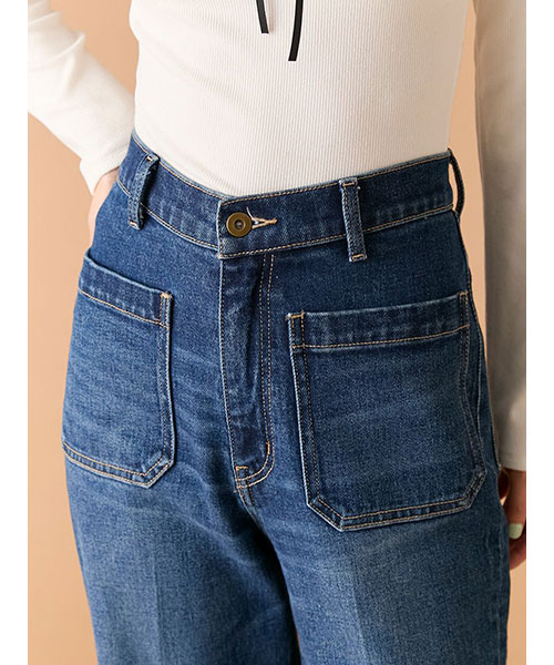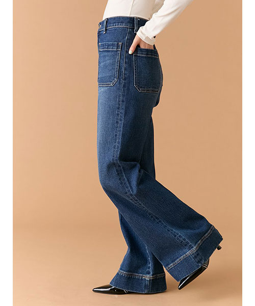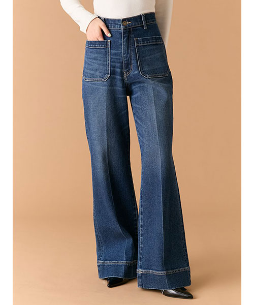 トレンド感のあるボーホーデザインを取り入れたストレートフレアデニム。ハイウエストで腰まわりをタイトに仕上げ、縦にすっきりと落ちるセンタープレスが美脚効果をさらに引き立てます。フレアシルエットが脚長見えを叶え、合わせるアイテムを選ばない万能な一本。カジュアルにもきれいめにも、幅広いスタイリングで活躍します。