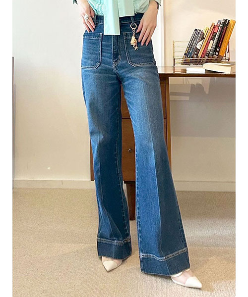 【美脚効果を高めるボーホーデザインフレアデニム】【Design/Styling】