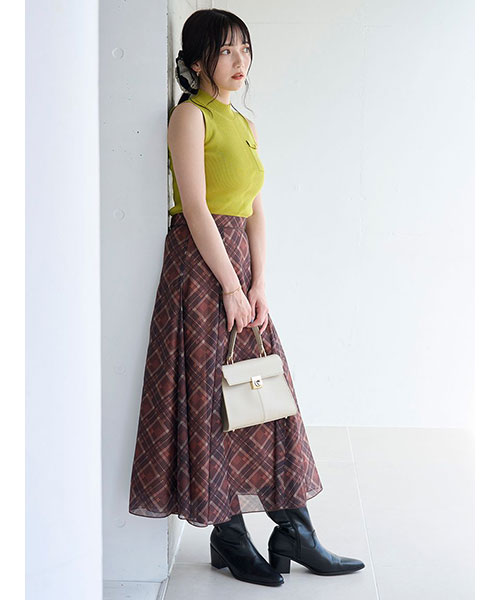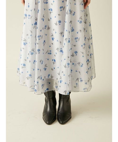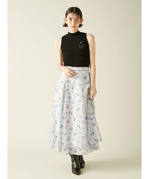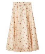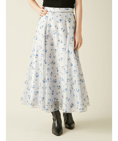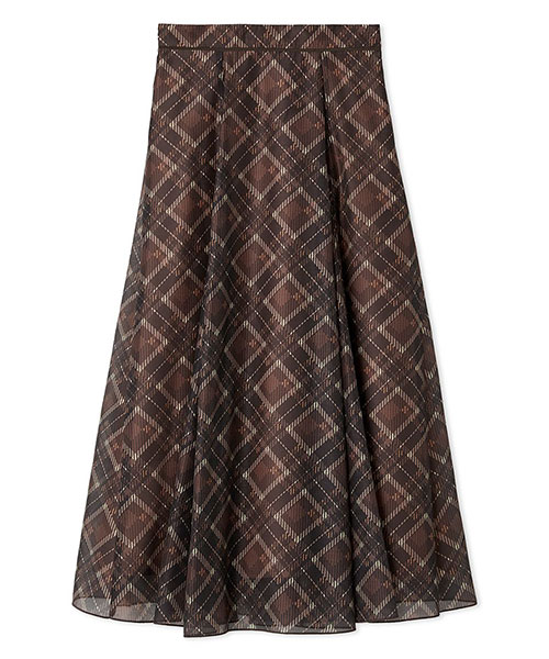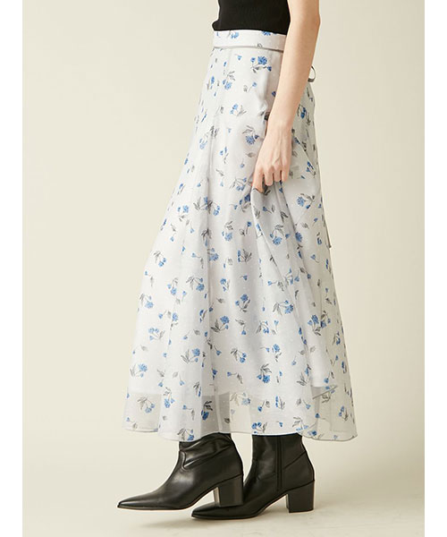 シボ感のある柔らかなオーガンジーに、「LILY BROWN」オリジナルのローズとチェック柄をプリントした存在感のあるフレアスカート。マチを贅沢に取ったたっぷりの分量がフェミニンさとモード感を両立し、動くたびにドラマティックな印象を与えます。ウエストはゴム仕様で快適な着心地も魅力。レザーブルゾンなど、ミドル丈アウターとの相性が抜群です。