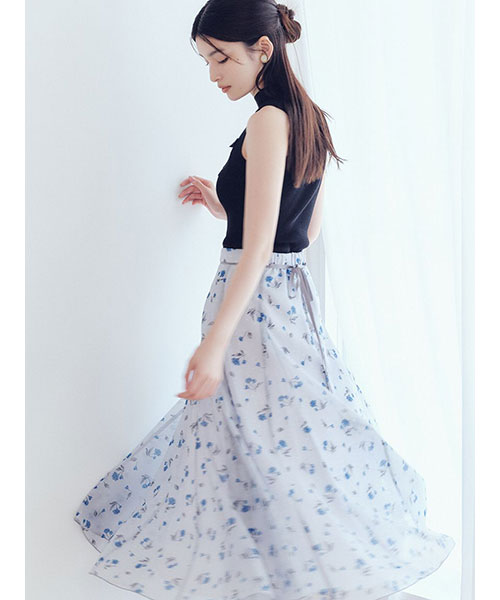 【透け感がセンシュアルなヴィンテージプリントのフレアスカート】【Design/Styling】